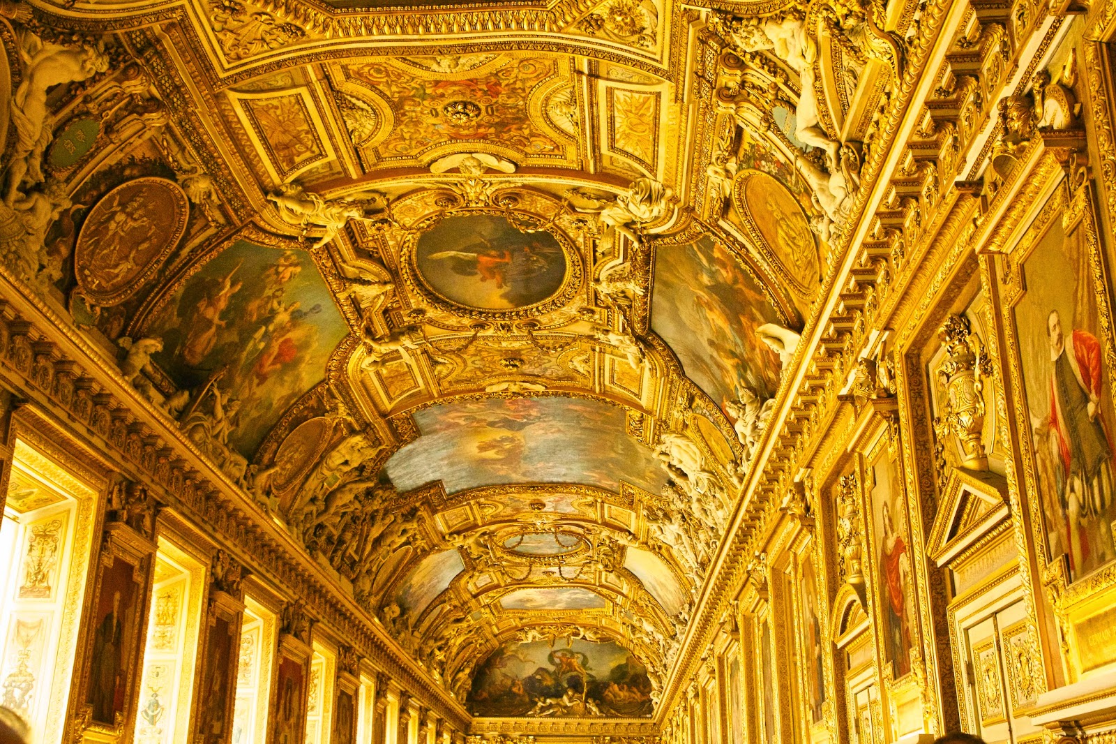We start by heading to the Louvre. Yes, the Louvre is an amazing art museum, but the building itself is an amazing sight to see. It was the palace of kings from the 1100's to the late 1600's. And those kings knew how to decorate!! No expense or detail was spared. Just seeing the ceilings of this building would be more than worth the price of admission.
